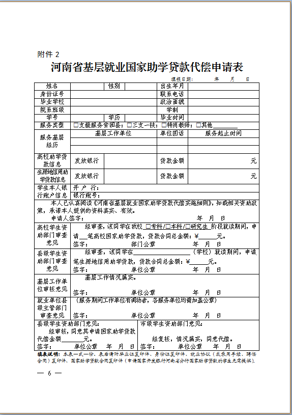 1河南省高等学校毕业生国家助学贷款代偿申请表